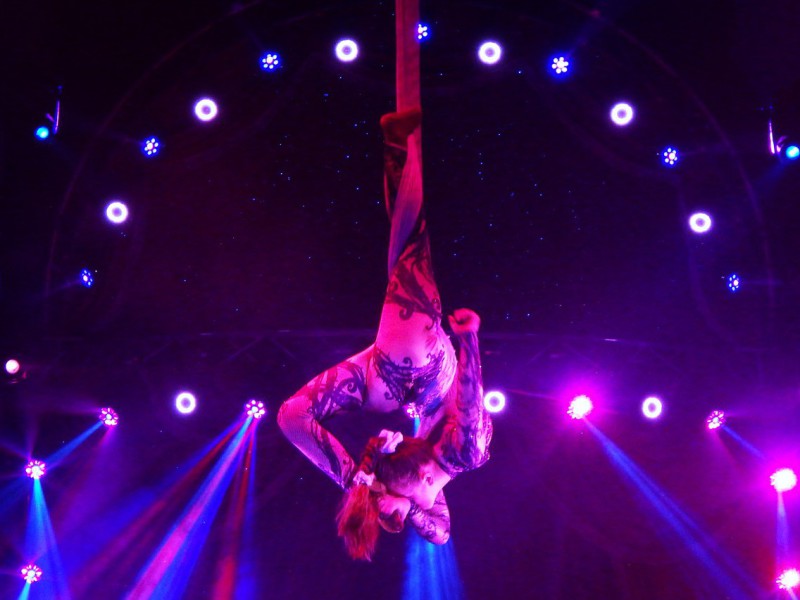 Mit Anmut und Eleganz präsentiert Celina ihr Können am Aerial-Netz.