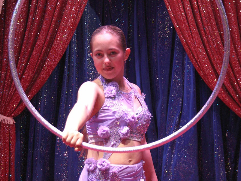 "Spielzeug" auch heute noch verwenden kann. Als Höhepunkt lässt unsere junge Artistin alle Reifen auf einmal um ihren Körper kreisen.