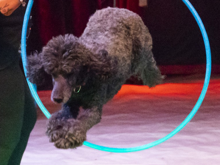 In diesem quirligen Programmpunkt stellen unsere Vierbeiner Strolchi und Teddy mit sichtlich viel Freude ihr Talent unter Beweis. Selbst das Springen durch den Reifen ist für unsere beiden Stars keine unüberwindbare Hürde.